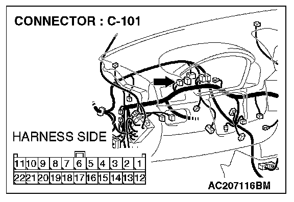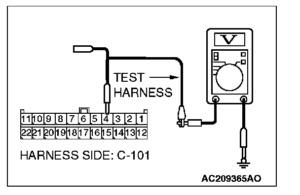 1. Disconnect joint connector (4) C-101, and measure the voltage at the wiring harness side of joint connector (4) C-101.