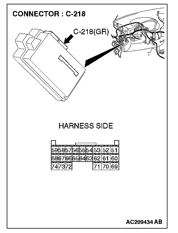 STEP 40. Check ETACS-ECU connector C-218 for loose, corroded or damaged terminals, or terminals pushed back in the connector.