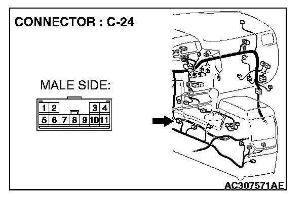 STEP 22. Check intermediate connector C-24 for loose, corroded or damaged terminals, or terminals pushed back in the connector.