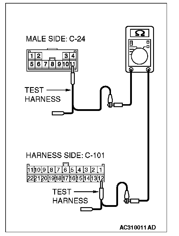 STEP 24. Check the CAN bus lines between intermediate connector C-24 and the joint connector (4). Measure the resistance between intermediate connector C-24 and joint connector (4) C-101.
