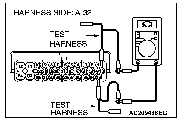 1. Disconnect TCL/ASC-ECU connector A-32, and measure the resistance at the equipment side of TCL/ASC-ECU connector A-32.