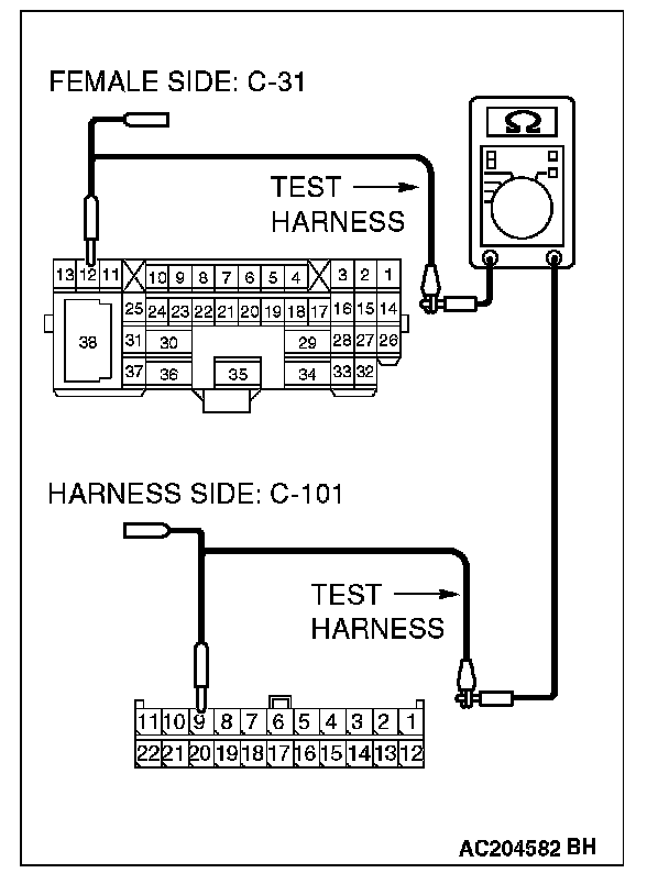 STEP 38. Check the CAN bus lines between intermediate connector C-31 and the joint connector (4). Measure the resistance between intermediate connector C-31 and joint connector (4) C-101.