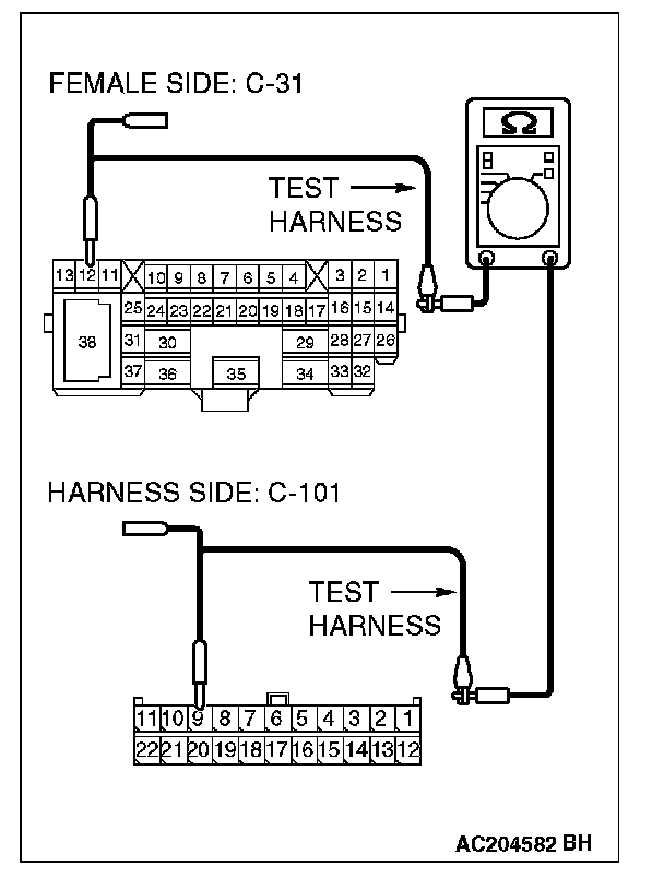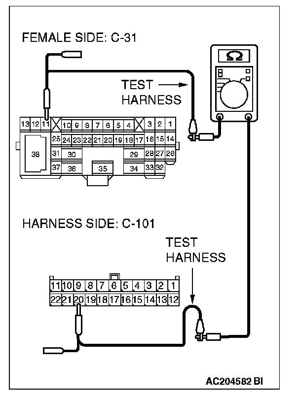 STEP 3. Check the CAN bus lines between intermediate connector C-31 and the joint connector (4). Measure the resistance between intermediate connector C-31 and joint connector (4) C-101.