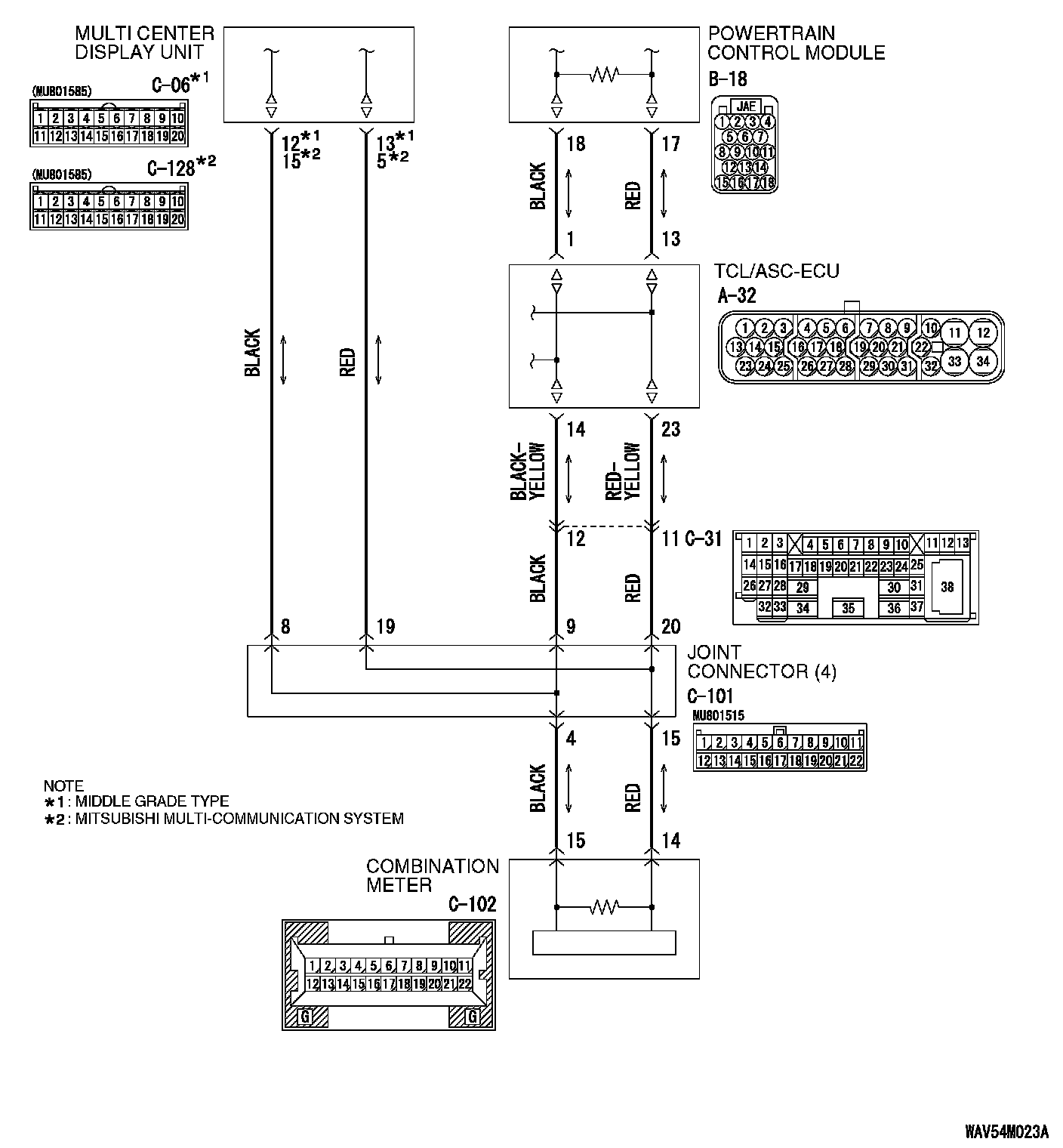 The wiring harness wire or connectors may have loose, corroded, or damage terminals, or terminals pushed back in the connector, or multi-center display unit (middle-grade type or vehicles with Mitsubishi multi communication system) may be defective.