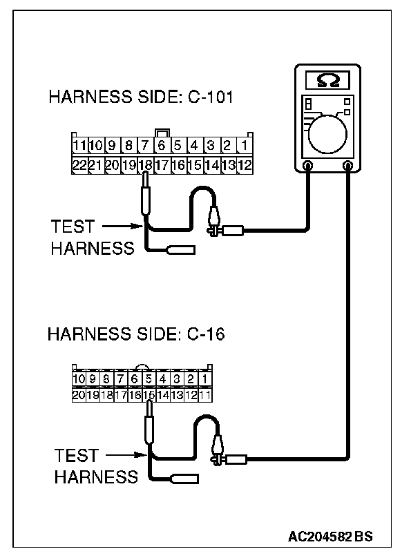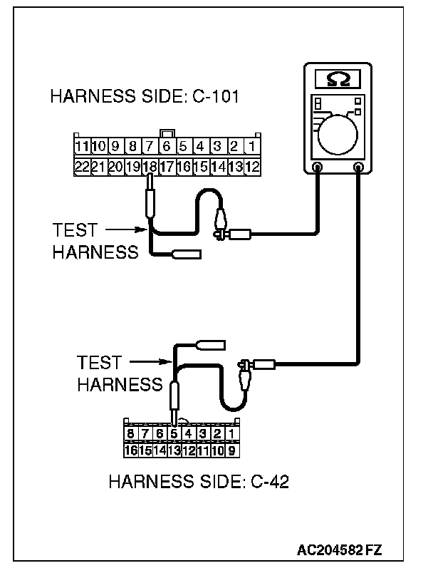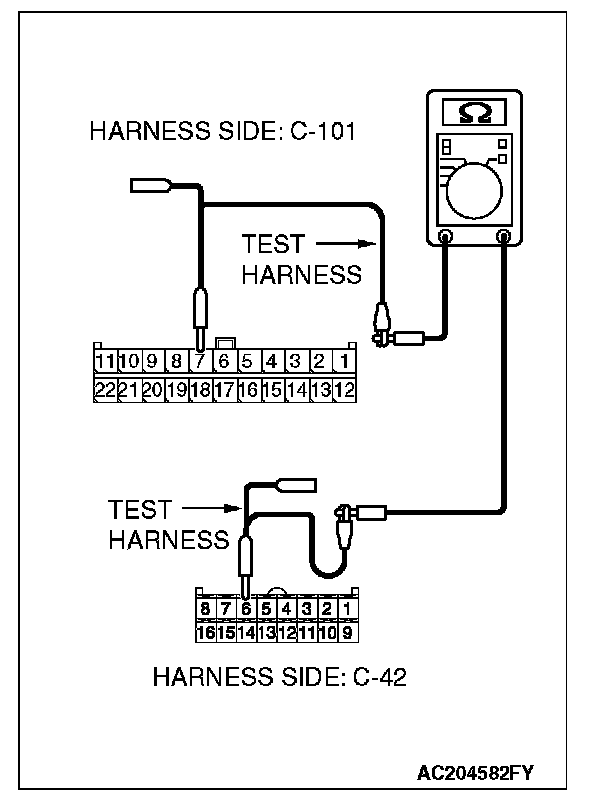 STEP 2. Check the CAN bus lines between joint connector (4) and the A/C-ECU. Measure the resistance between joint connector (4) C-101 and A/C-ECU connector C-42 [manual air conditioning system] or A/C-ECU connector C-16 [automatic air conditioning system].