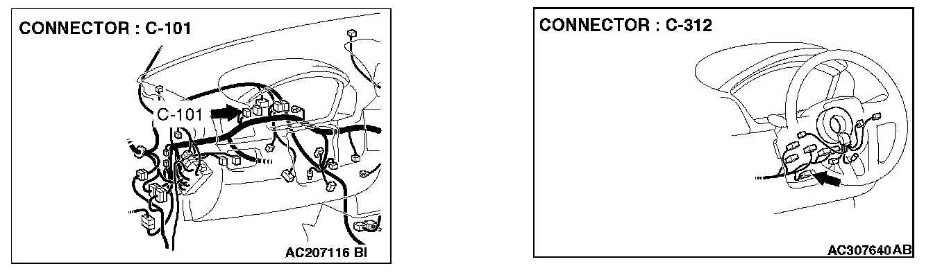 STEP 1. Check joint connector (4) C-101 and steering wheel sensor connector C-312 for loose, corroded or damaged terminals, or terminals pushed back in the connector.