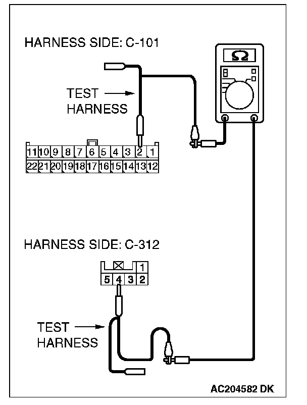 STEP 2. Check the CAN bus lines between joint connector (4) and the steering wheel sensor. Measure the resistance between joint connector (4) C-101 and steering wheel sensor connector C-312.