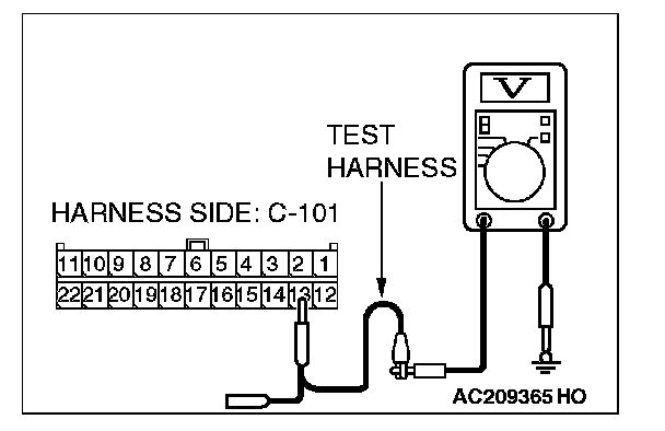 3. Measure the voltage between intermediate connector terminal 12 and body ground.