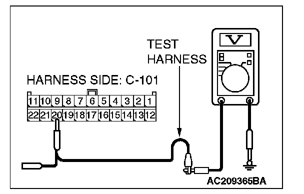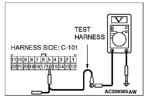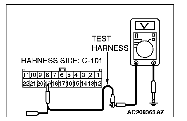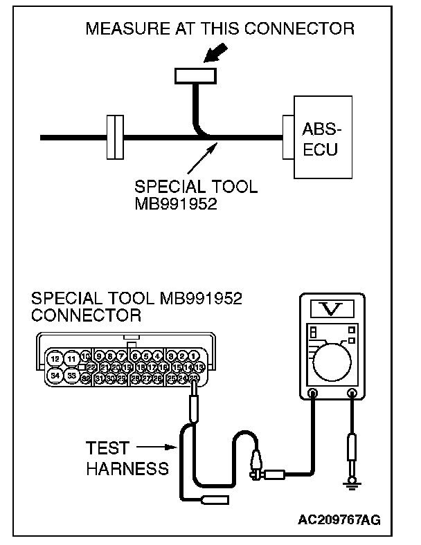 2. Connect special tool MB991952 (ABS check harness) to the TCL/ASC-ECU and the wiring harness, and measure the voltage at special tool MB991952 (ABS check harness).