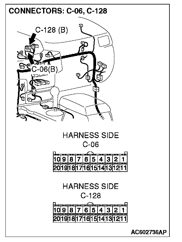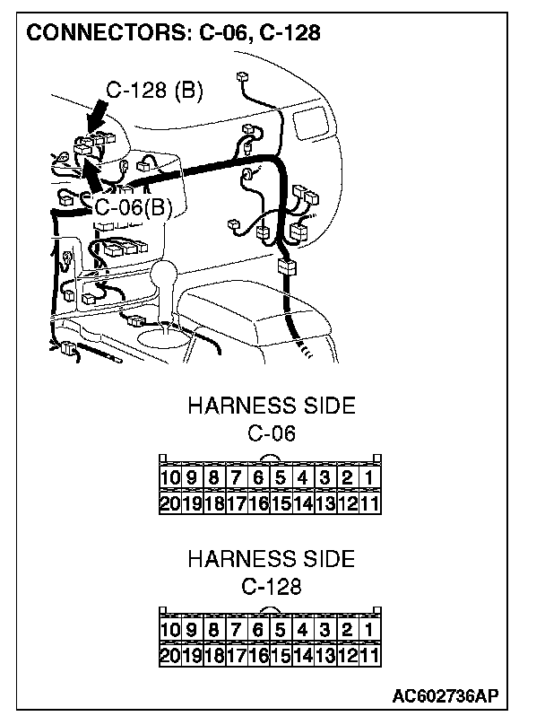 STEP 29. Check multi-center display unit (middle-grade type or Mitsubishi Multi Communication System) connector C-06 [multi-center display unit (middle-grade type)] or C-128 [multi-center display unit (Mitsubishi Multi Communication System)] for loose, corroded or damaged terminals, or terminals pushed back in the connector.
