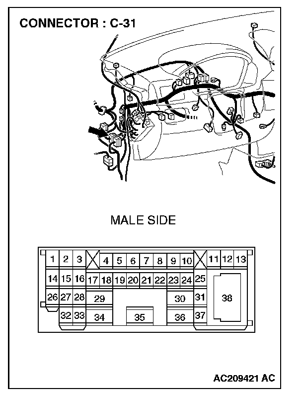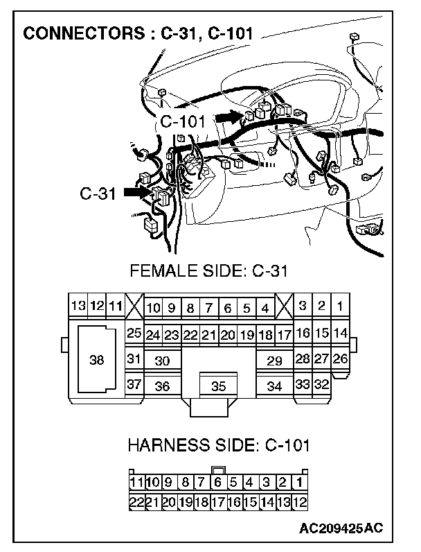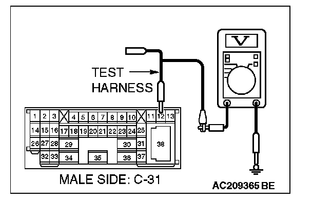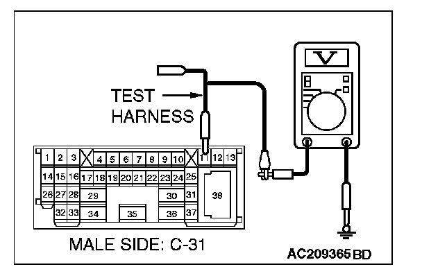 1. Disconnect intermediate connector C-31, and measure the voltage at the male side (at front wiring harness side).