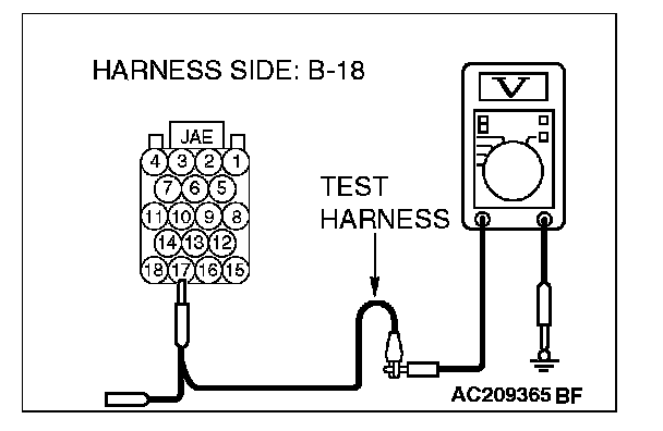1. Disconnect powertrain control module connector B-18 and TCL/ASC-ECU connector A-32, and measure the voltage at the harness side of powertrain control module connector B-18.