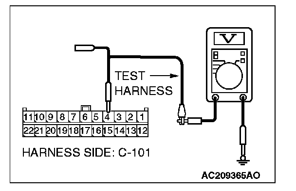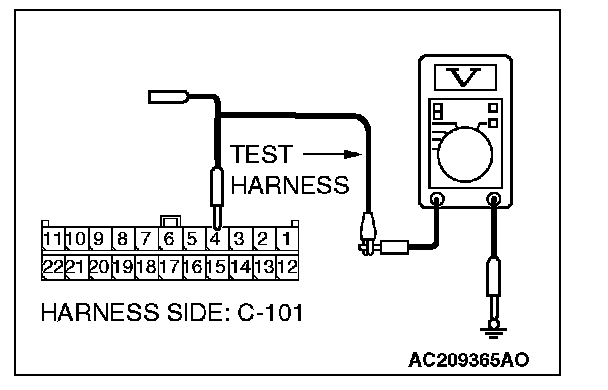 1. Disconnect joint connector (4) C-101, and measure the voltage at the wiring harness side of joint connector (4) C-101.