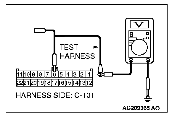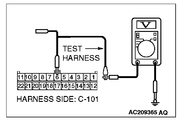 4. Measure the voltage between special tool MB991952 (ABS check harness) connector terminal 23 and body ground.