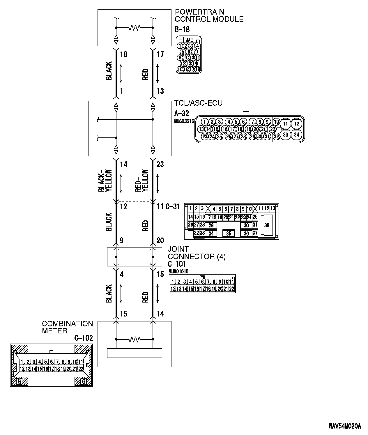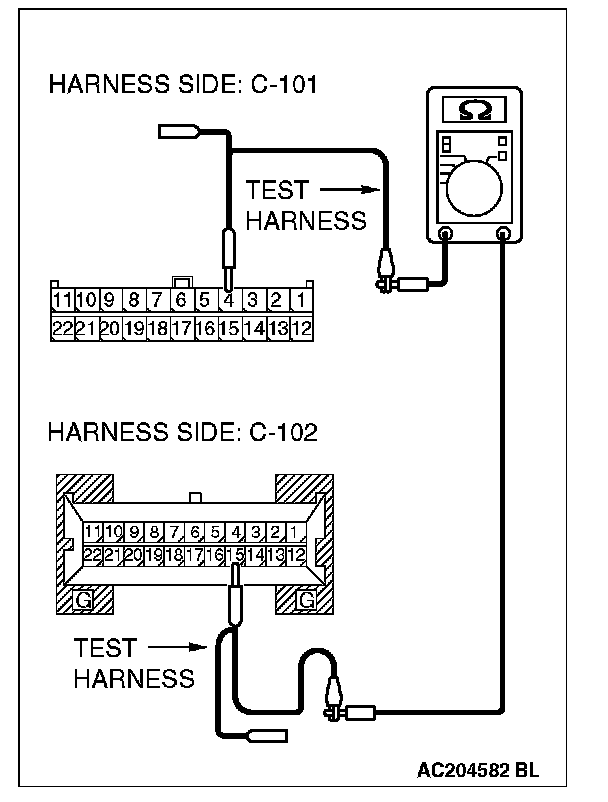 STEP 2. Check the CAN bus lines between joint connector (4) and the combination meter. Measure the resistance between joint connector (4) C-101 and combination meter connector C-102.