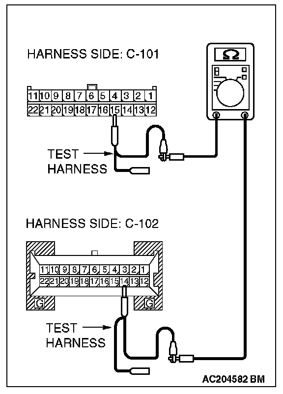 1. Disconnect joint connector (4) C-101 and combination meter connector C-102, and measure the resistance between each wiring harness side connector.