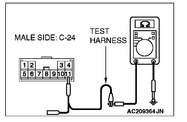1. Disconnect intermediate connector C-24 and joint connector (4) C-101, and measure the resistance at the wiring harness side of joint connector (4) C-101.