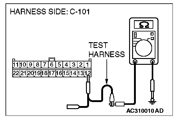 1. Disconnect intermediate connector C-31 and joint connector (4) C-101, and measure the resistance at the wiring harness side of joint connector (4) C-101.