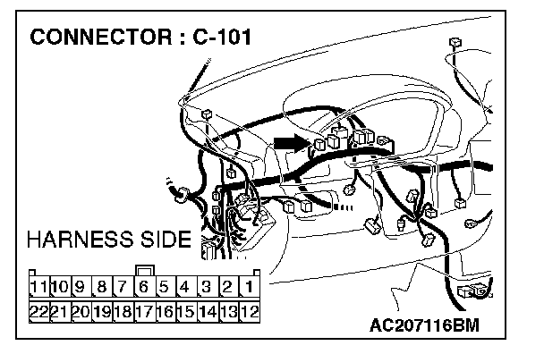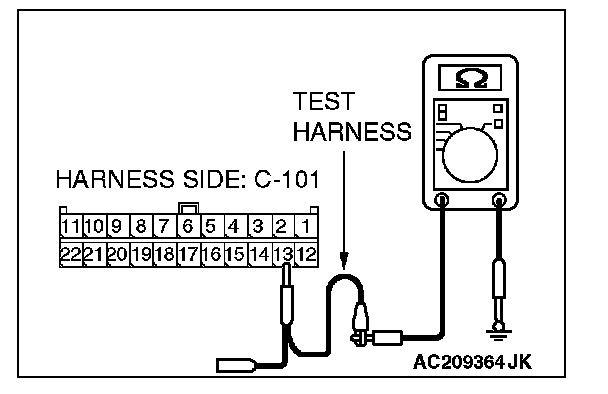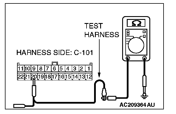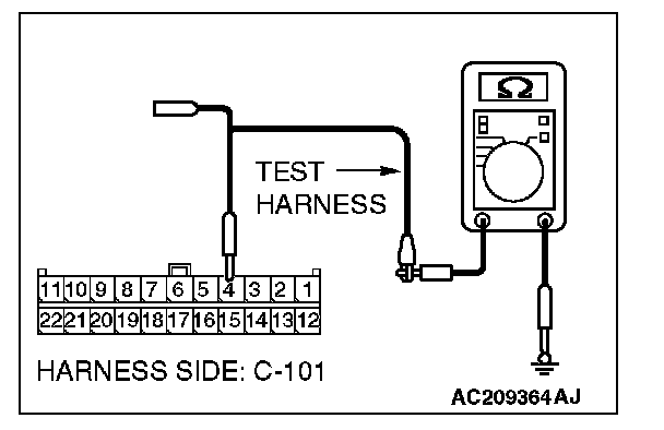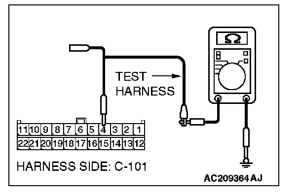 1. Disconnect joint connector (4) C-101 and ETACS-ECU connector C-218, and measure the resistance at the wiring harness side of joint connector (4) C-101.