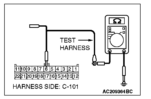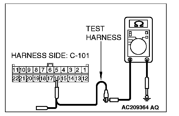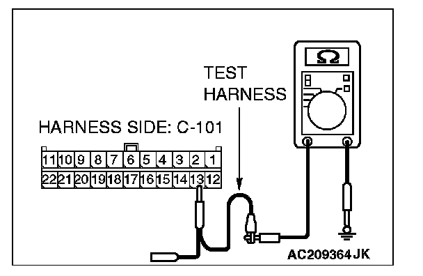 2. Connect special tool MB991952 (ABS check harness) to the TCL/ASC-ECU and the wiring harness, and measure the resistance at special tool MB991952 (ABS check harness).