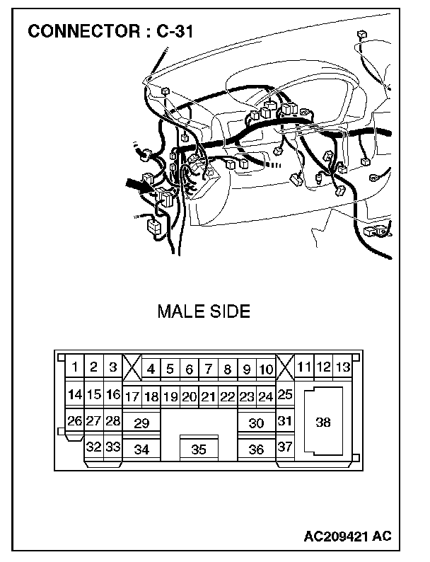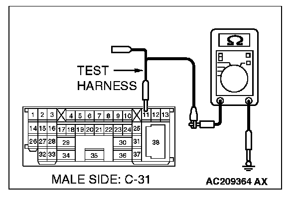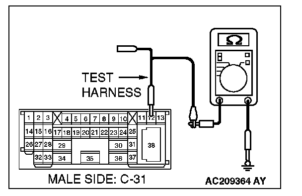 1. Disconnect intermediate connector C-31, and measure the resistance at the male side (at front wiring harness side).