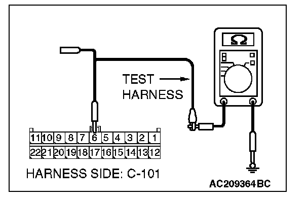 5. Measure the resistance between special tool MB991952 (ABS check harness) connector terminal 23 and body ground.