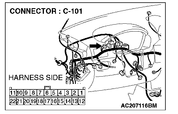 1. Disconnect joint connector (4) C-101, and measure the resistance at the wiring harness side of joint connector (4) C-101.