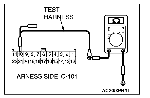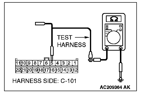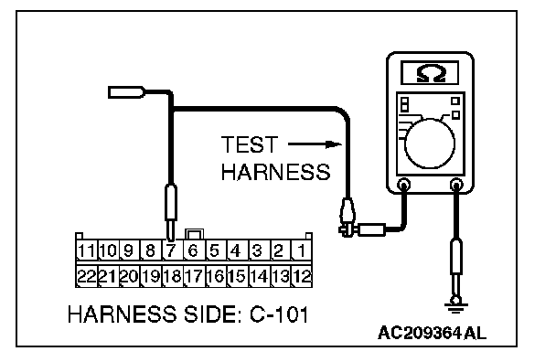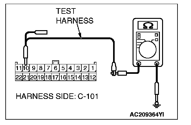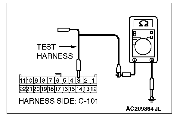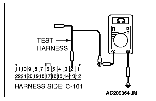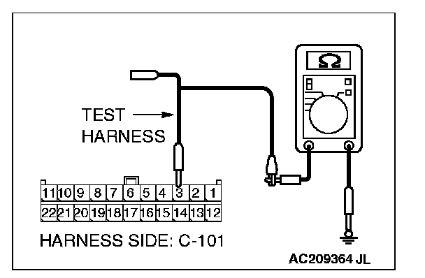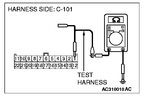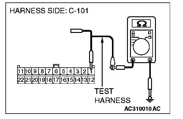 1. Disconnect intermediate connector C-31 and joint connector (4) C-101, and measure the resistance at the wiring harness side of joint connector (4) C-101.