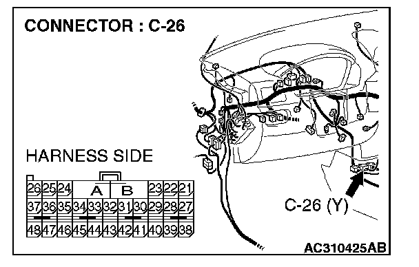STEP 46. Check SRS-ECU connector C-26 for loose, corroded or damaged terminals, or terminals pushed back in the connector.