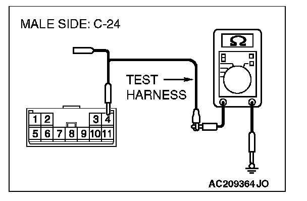 1. Disconnect intermediate connector C-24 and joint connector (4) C-101, and measure the resistance at the wiring harness side of joint connector (4) C-101.