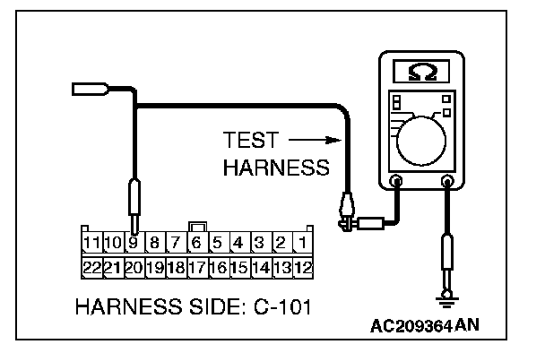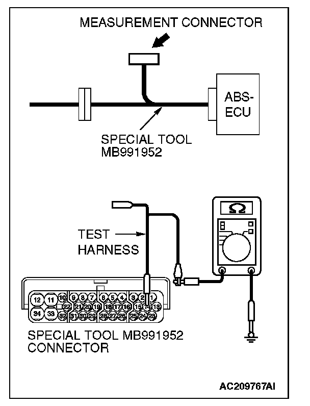 2. Connect special tool MB991952 (ABS check harness) to the TCL/ASC-ECU and the wiring harness, and measure the resistance at special tool MB991952 (ABS check harness).