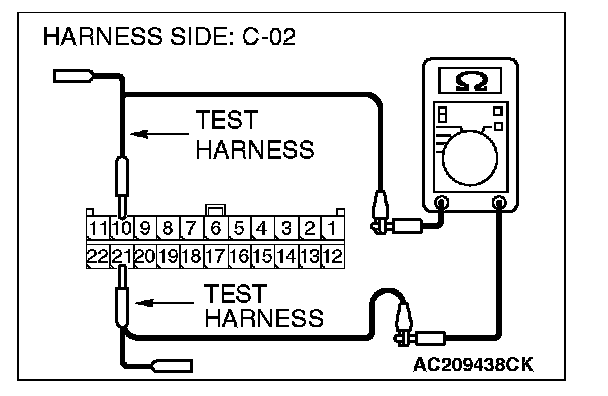 - The test wiring harness should be used.