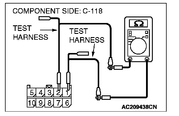 1. Disconnect TPMS receiver connector C-118, and measure the resistance at the component side of TPMS receiver connector C-118.