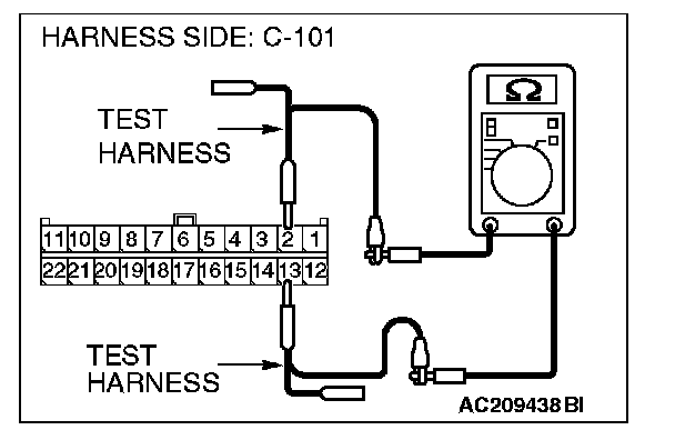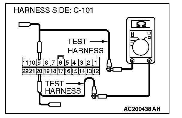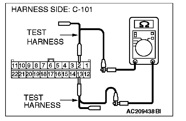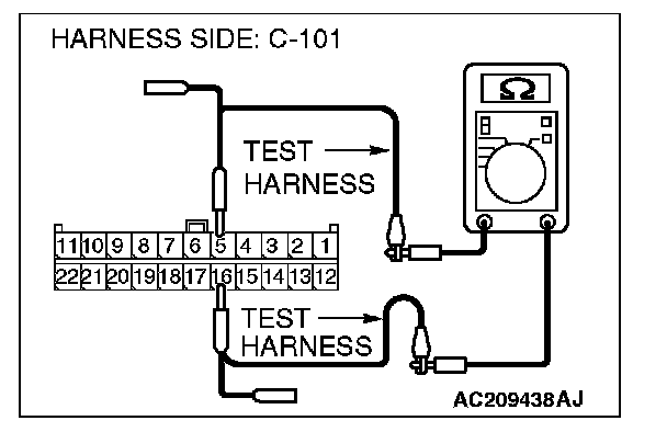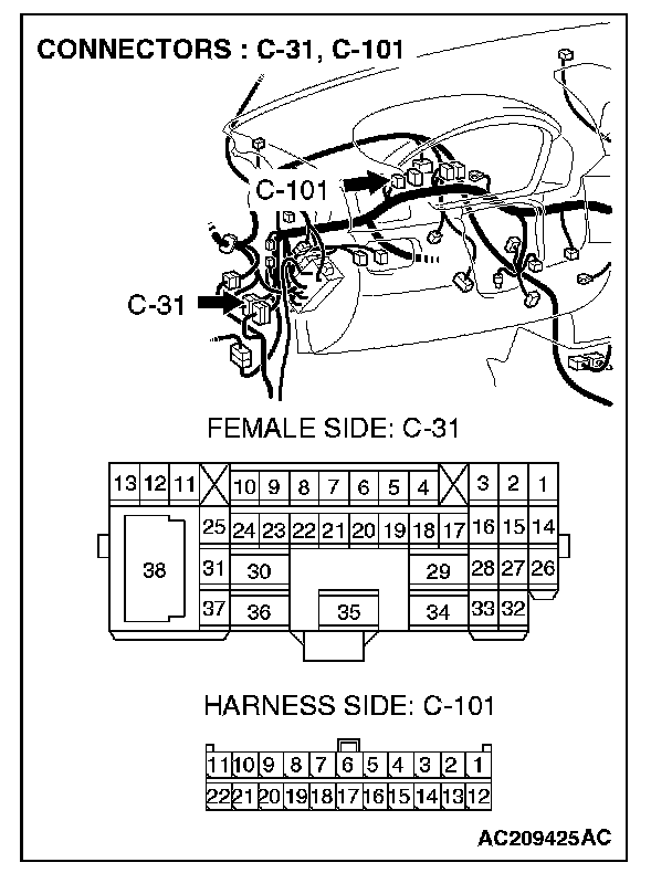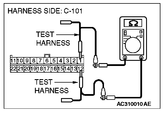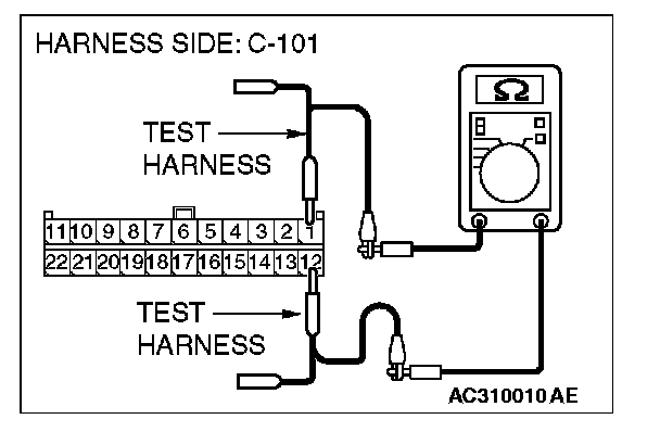 1. Disconnect intermediate connector C-31 and joint connector (4) C-101, and measure the resistance at the wiring harness side of joint connector (4) C-101.