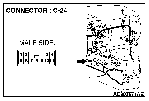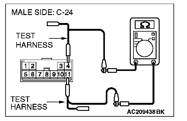 1. Disconnect intermediate connector C-24 and joint connector (4) C-101, and measure the resistance at the wiring harness side of joint connector (4) C-101.