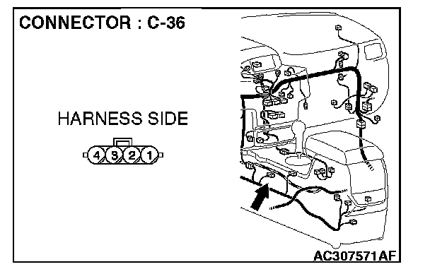 1. Disconnect G and yaw rate sensor connector C-36, and measure the resistance at the equipment side of G and yaw rate sensor connector C-36.