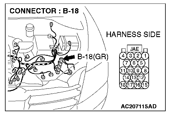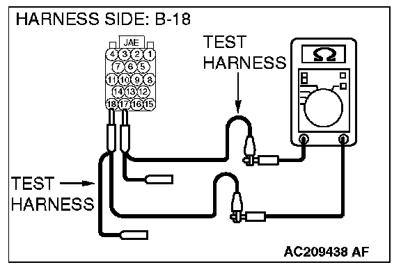 1. Disconnect powertrain control module connector B-18 and TCL/ASC-ECU connector A-32, and measure the resistance at the harness side of powertrain control module connector B-18.