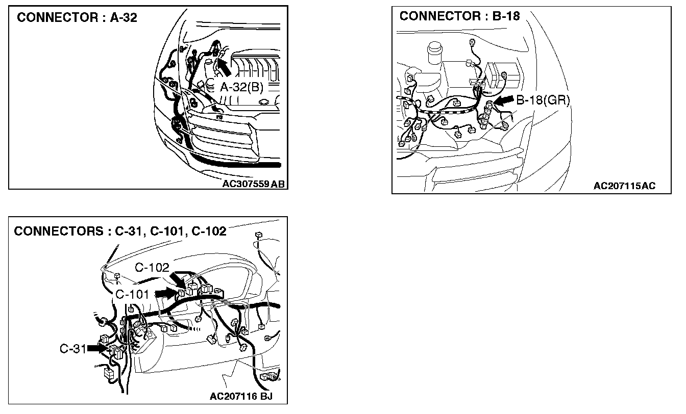 STEP 1. Check intermediate connector C-31 for loose, corroded or damaged terminals, or terminals pushed back in the connector.