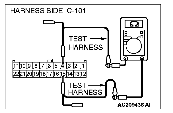 1. Disconnect joint connector (4) C-101, and measure the resistance at the wiring harness side of joint connector (4) C-101.