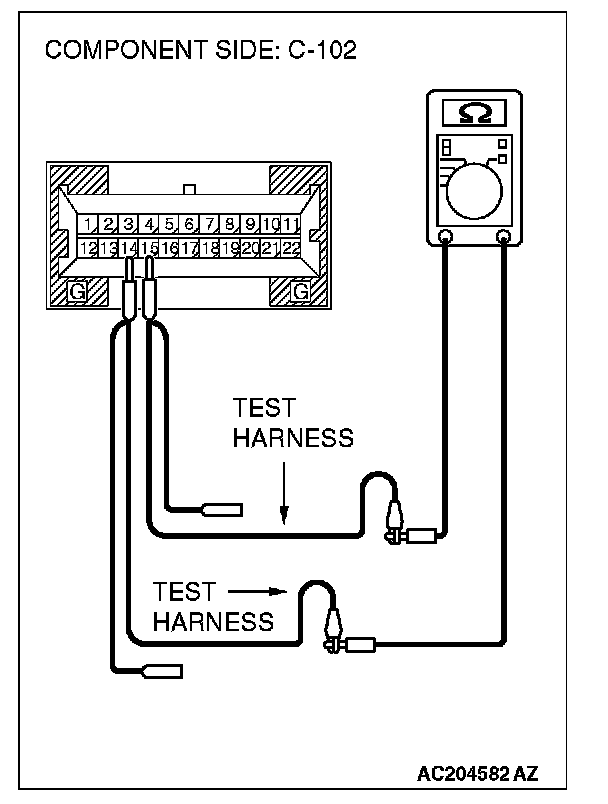 1. Disconnect combination meter C-102, and measure the resistance at the equipment side of combination meter connector C-102.