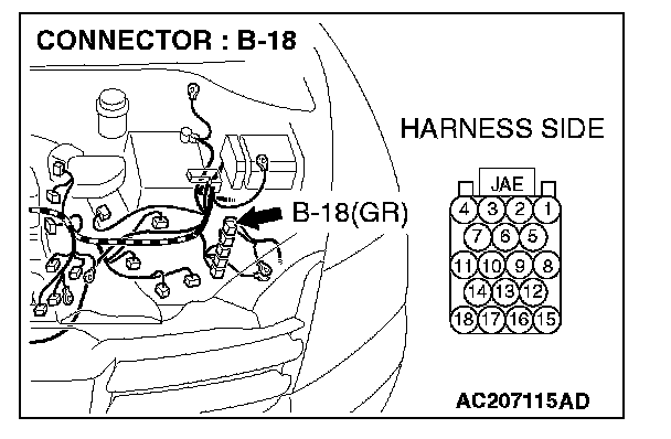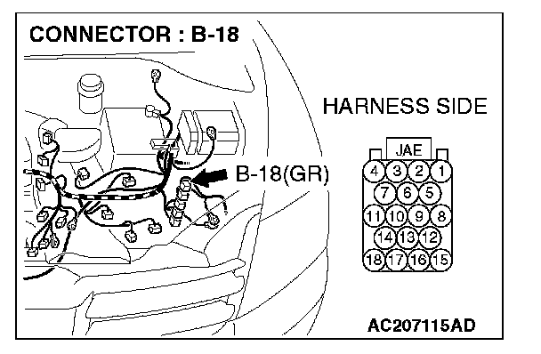 1. Disconnect powertrain control module connector B-18, and measure the resistance at the equipment side of powertrain control module connector B-18.