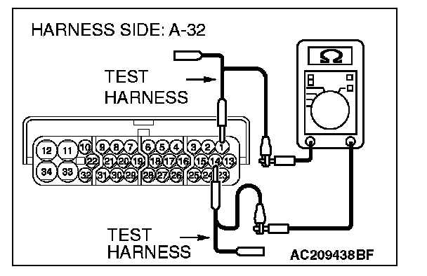 1. Disconnect TCL/ASC-ECU connector A-32, and measure the resistance at the wiring harness side of TCL/ASC-ECU connector A-32.