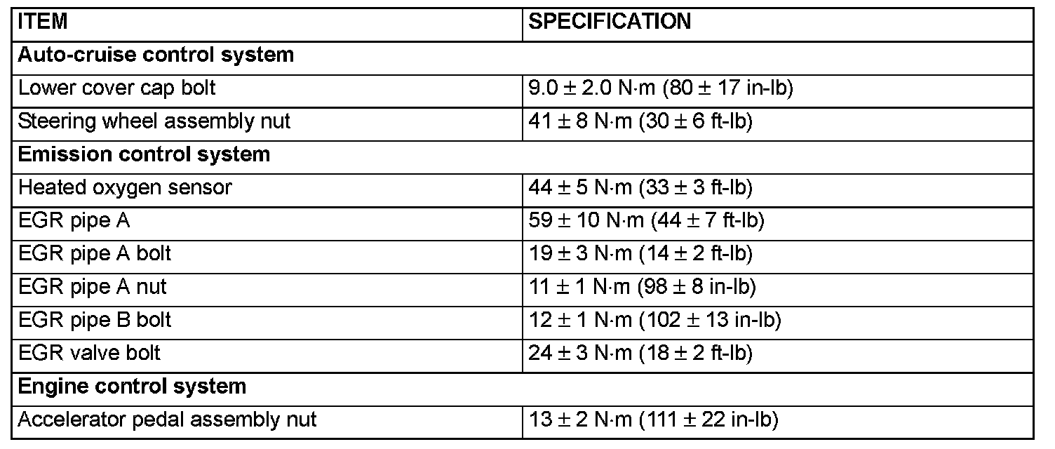 Fastener Tightening Specifications: