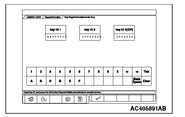 8. Enter the ID on the bar code plate which is attached to the ignition key, and press the OK button.