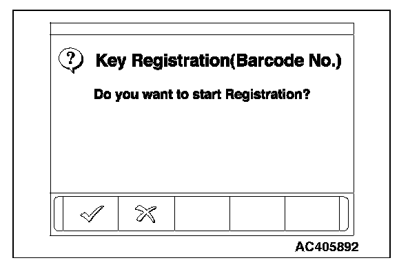 9. When the execution confirmation menu of the key registration (Barcode No.) is displayed, press the OK button.