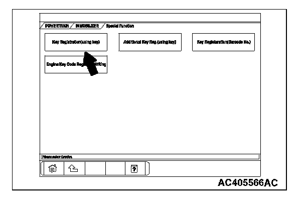 Encrypted Code Registration Using Ignition Key [Registration Using Scan Tool MB991958 (M.U.T.-III Sub Assembly)]