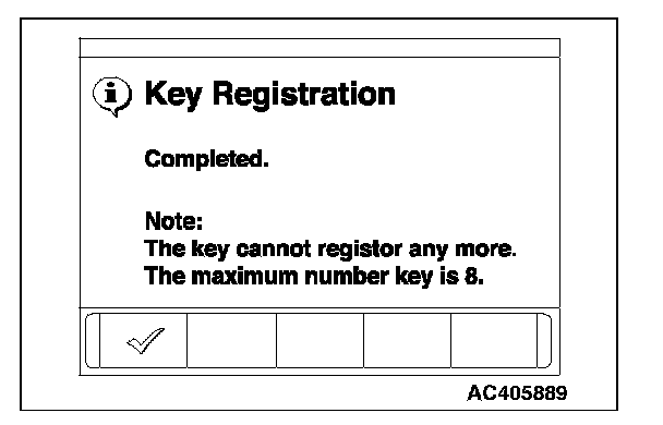 10. A maximum of eight ignition keys can be registered. When the registration of the eighth ignition key is finished, key registration completion menu is displayed. Press the OK button and finish the ignition key registration.