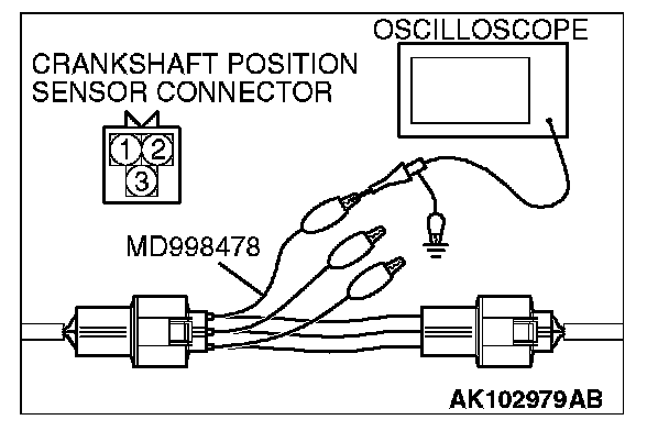 4. Connect the oscilloscope probe to crankshaft position sensor connector terminal No. 2 (black clip of special tool).