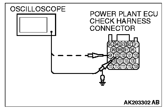 3. Connect the oscilloscope to check harness terminal No. 103. (Check the crankshaft position sensor signal wave pattern.)