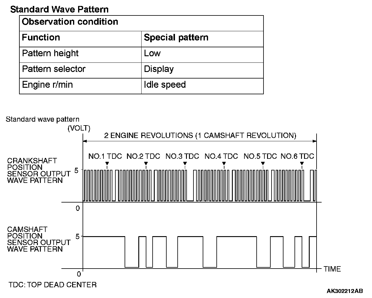 INSPECTION PROCEDURE USING AN OSCILLOSCOPECAMSHAFT POSITION SENSOR AND CRANKSHAFT POSITION SENSOR